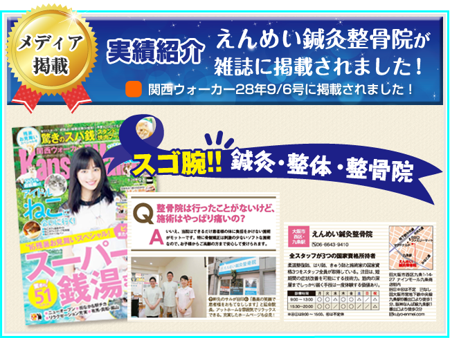 初めまして、大阪市西区九条・大阪市港区弁天町で整骨院を開院しております