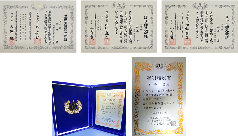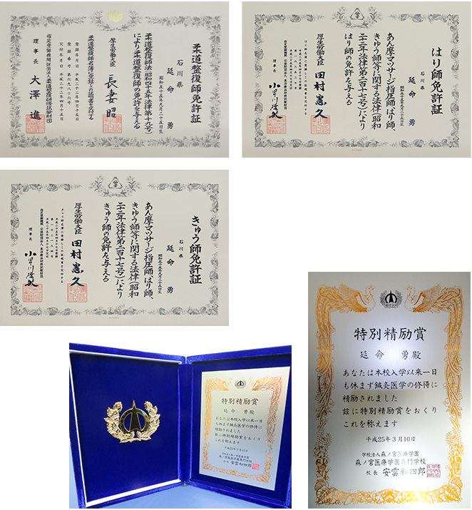 | 2013 | 森ノ宮医療学園専門学校 鍼灸学科 卒業 「はり師、きゅう師」免許取得 卒業式で表彰され「特別精励賞受賞 |
