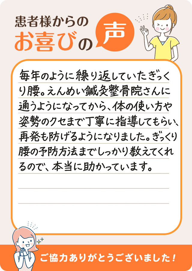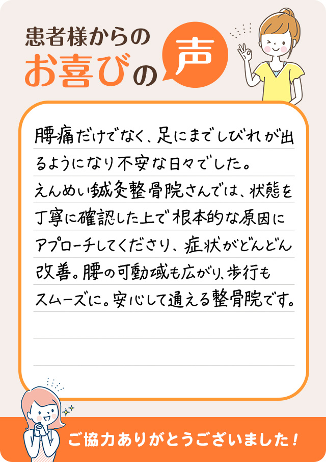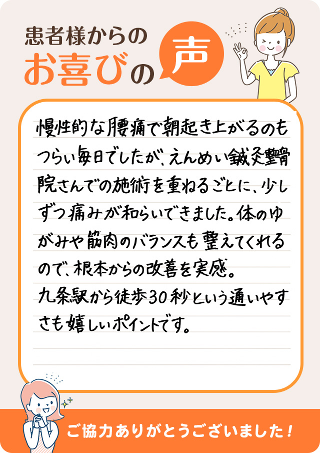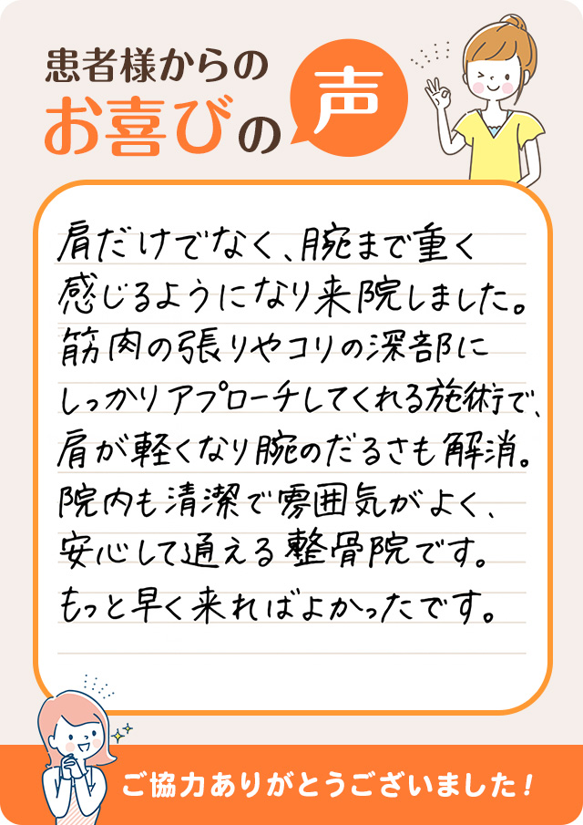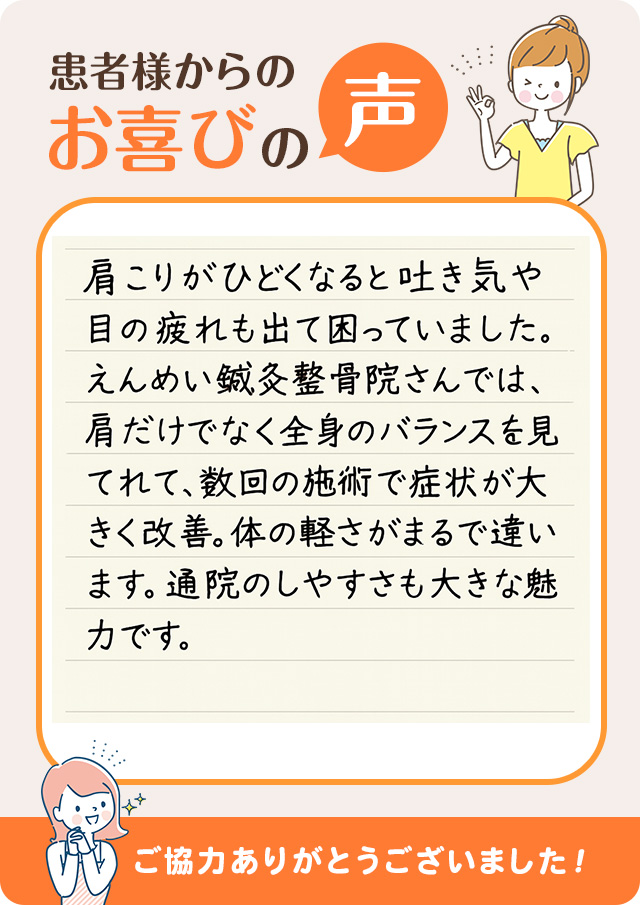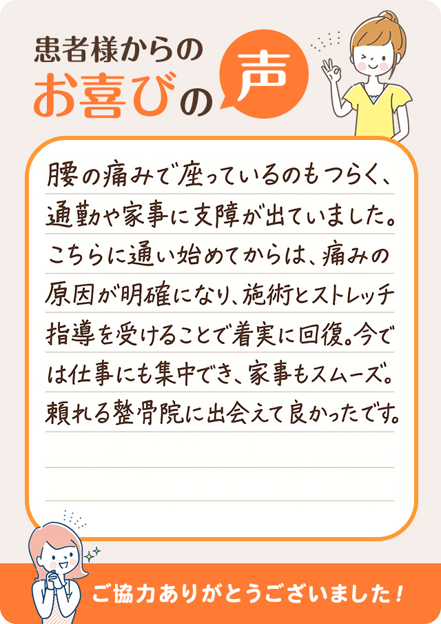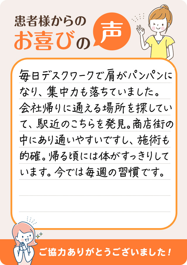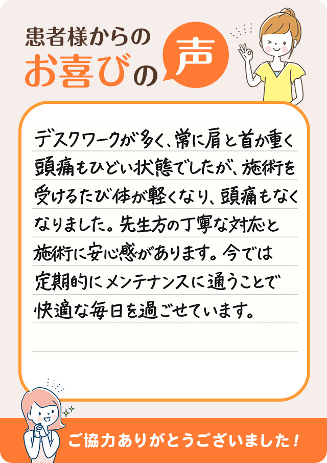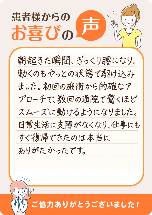 お客様の「早く楽になりたい」という気持ちは身に染みて感じております。